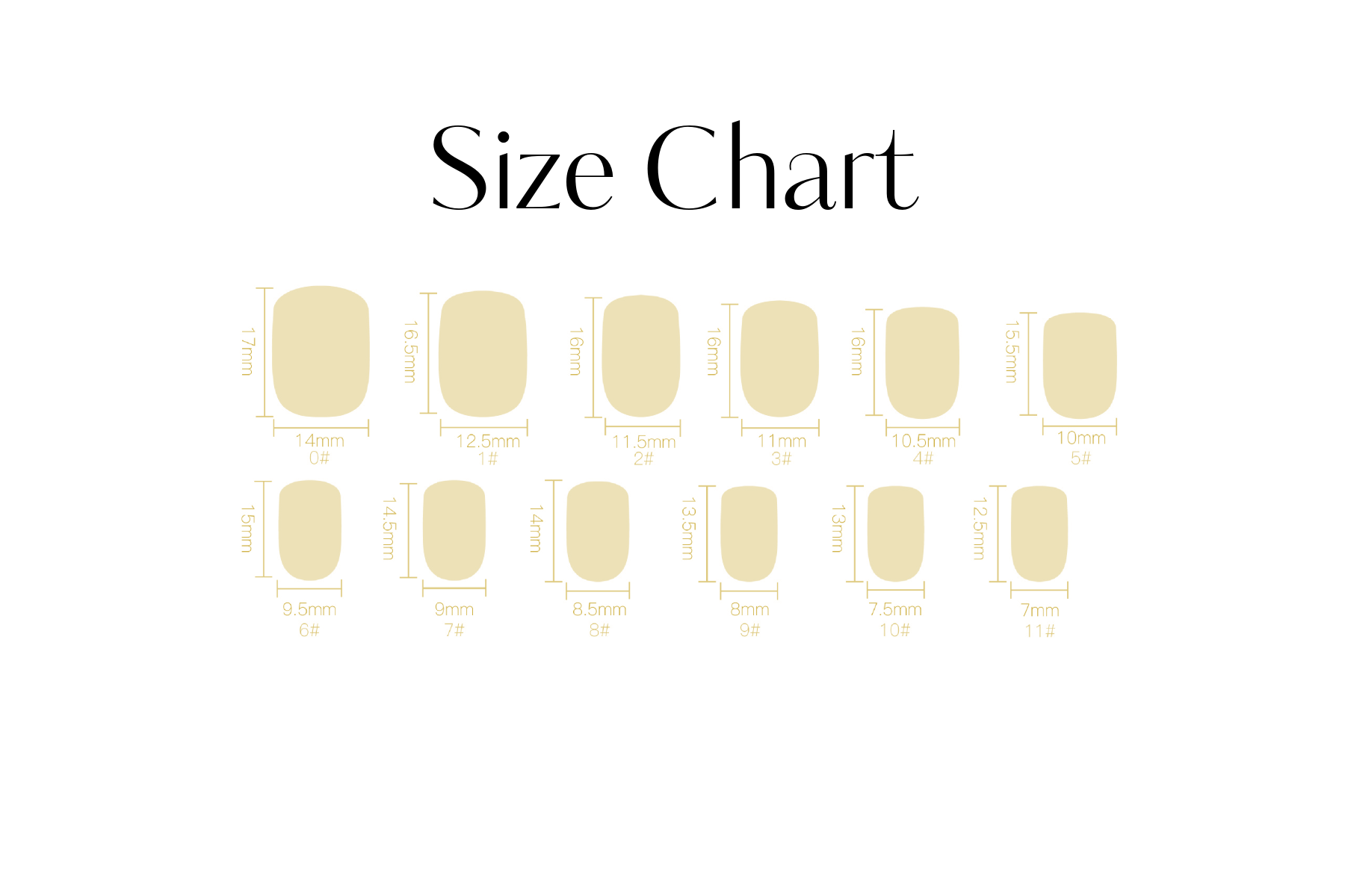 Match-Before applying, find the suitable size for each nail.
